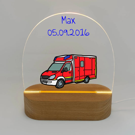 Krankenwagen, Rettungsdienst Nachtlicht mit eigenem Namen - Individuelles LED Nachtlicht