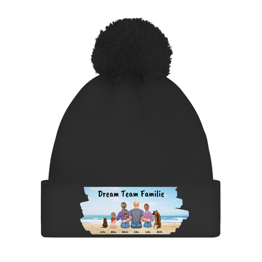 Familie auf der warmen Mütze - individuelle Bommelmütze