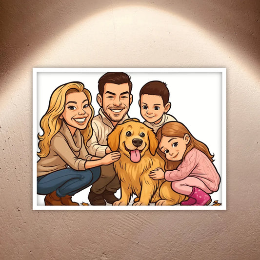 Deine Familie als Karikatur - individuelles Poster mit Rahmen
