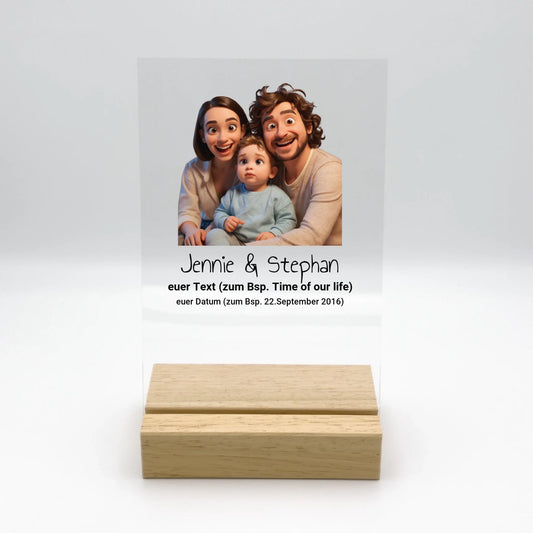 Euer Liebeslicht mit Foto im Cartoon Zeichentrick Design - Individuelles Acryl Glas mit Ständer
