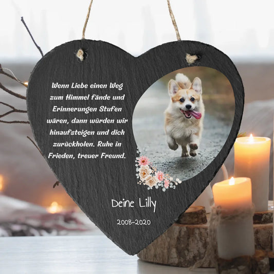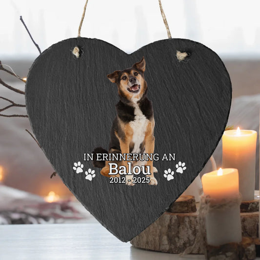 Hunde Herz aus Naturschiefer für Heim und Garten - individuelle Schieferplatte