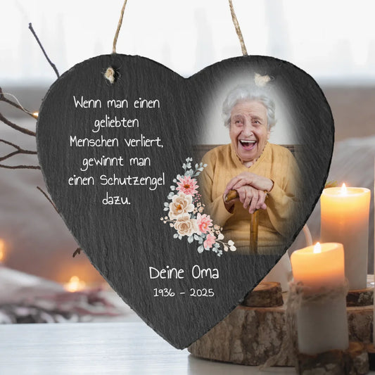 Dein Foto auf einem Herz aus Naturschiefer - individuelle Schieferplatte