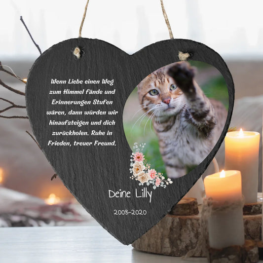 Katzen-Trauerschild und Gedenktafel aus Schiefer - individuelle Schieferplatte