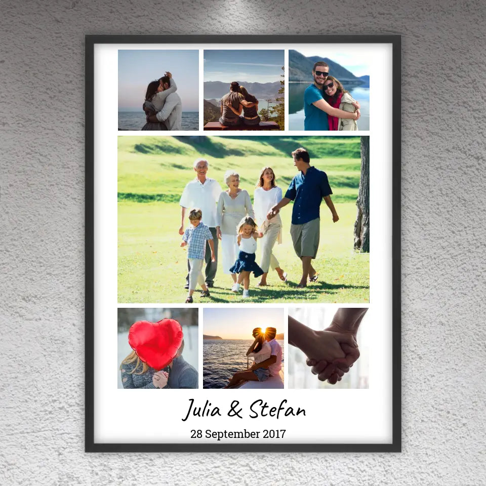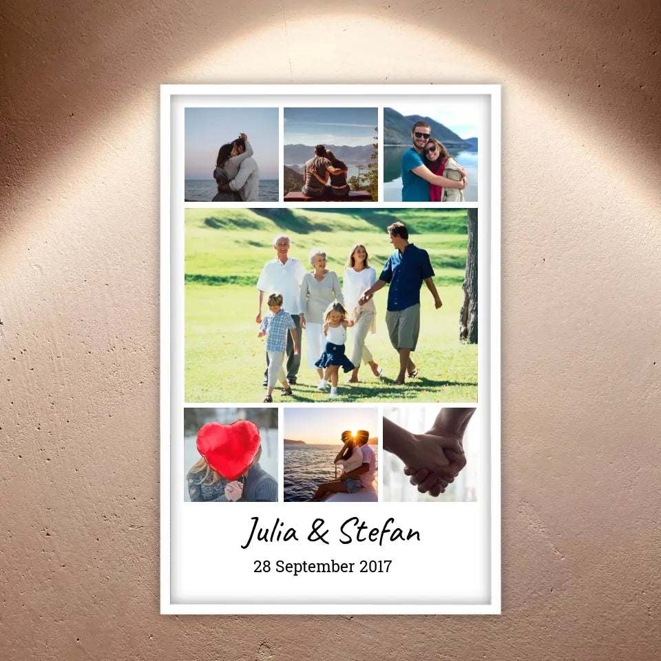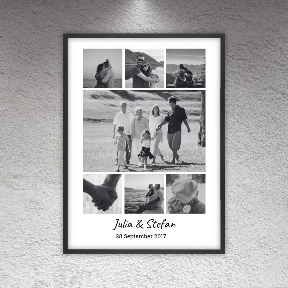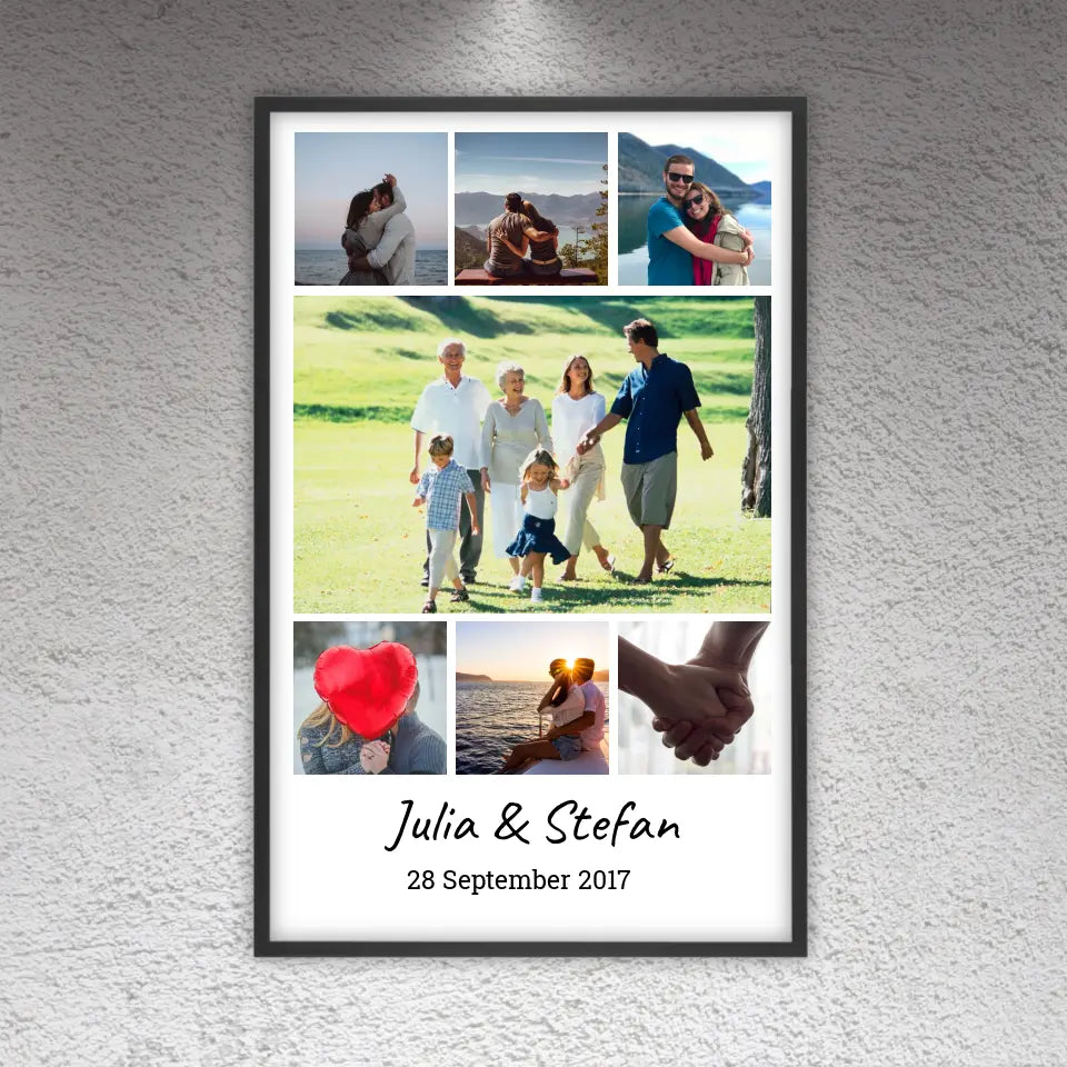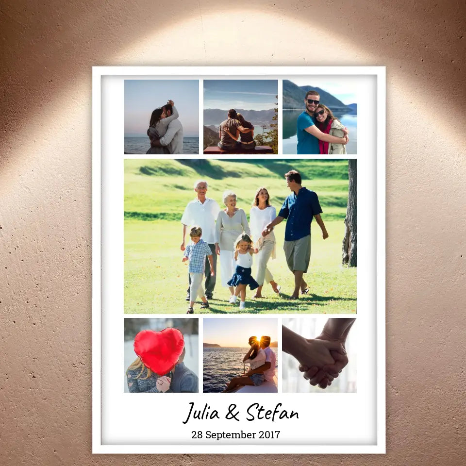 Erzählen Sie Ihre Geschichte in sieben Bildern – mit diesem eleganten Galerierahmen! Sieben Ihrer liebsten Fotos finden Platz in diesem stilvollen Rahmen und schaffen eine visuelle Erzählung Ihrer schönsten Momente. Hochwertig verarbeitet und vielseitig einsetzbar, wird dieser Rahmen zum Blickfang in jedem Raum. Ein wunderschönes Kunstwerk, das Ihre Erinnerungen würdigt und täglich an die Momente erinnert, die zählen – perfekt, um Ihre Geschichte kreativ an die Wand zu bringen!