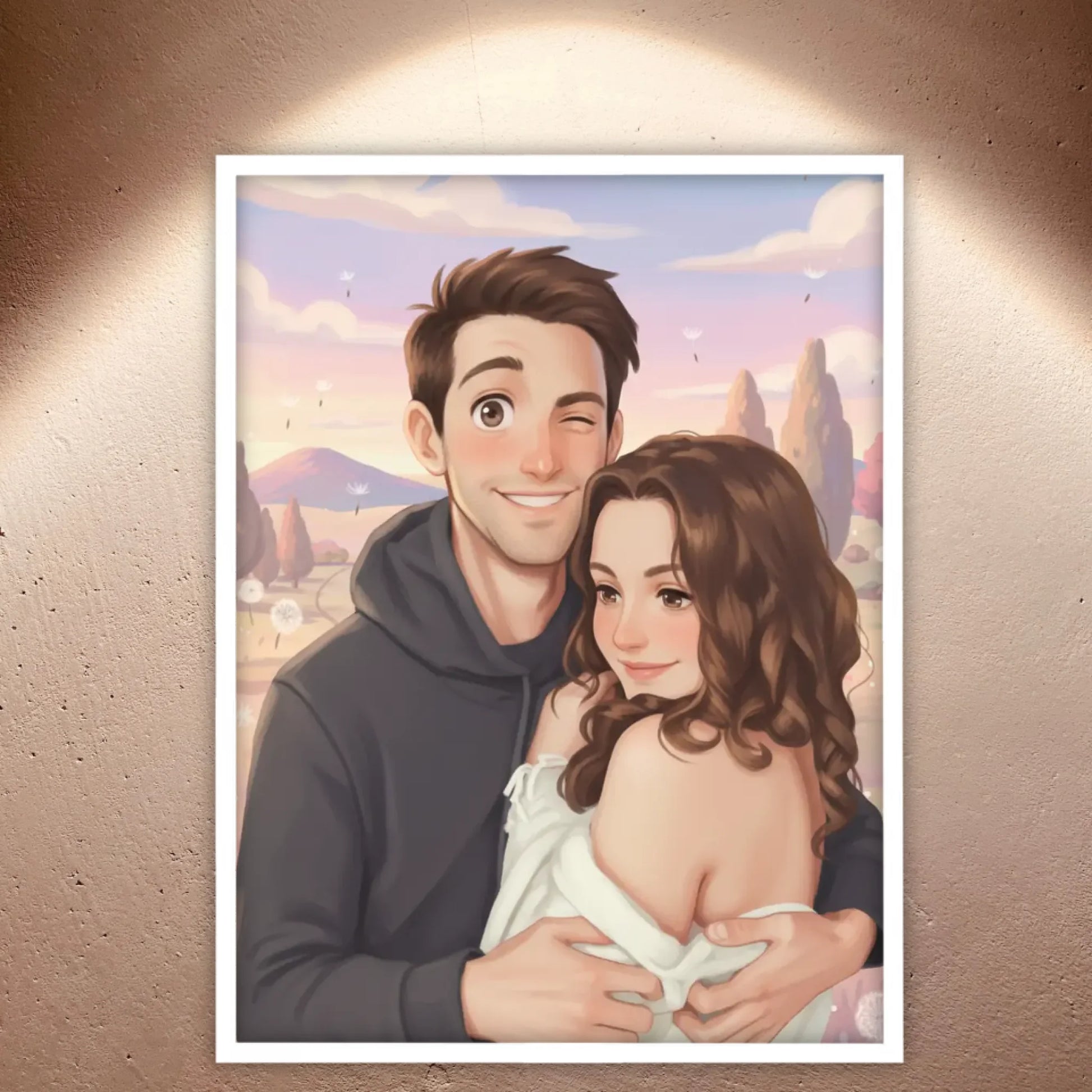 Verwandle dein Lieblingsbild in ein einzigartiges Anime Portrait im bezaubernden Ghibli-Stil. Dieses individuell gestaltete Poster wird mit einem eleganten Rahmen geliefert und bringt die Magie deiner Erinnerungen in dein Zuhause. Perfekt, um persönliche Geschichten künstlerisch festzuhalten und als besondere Dekoration oder Geschenk zu nutzen.
