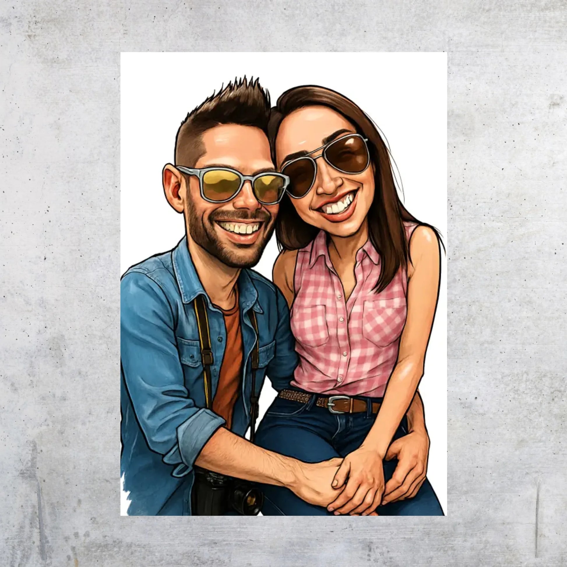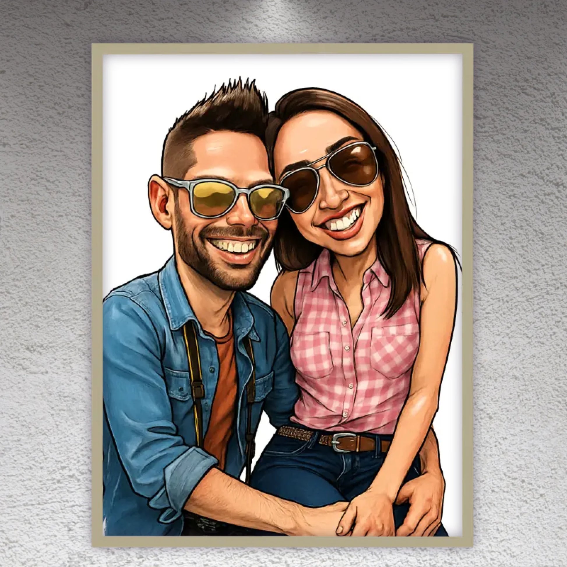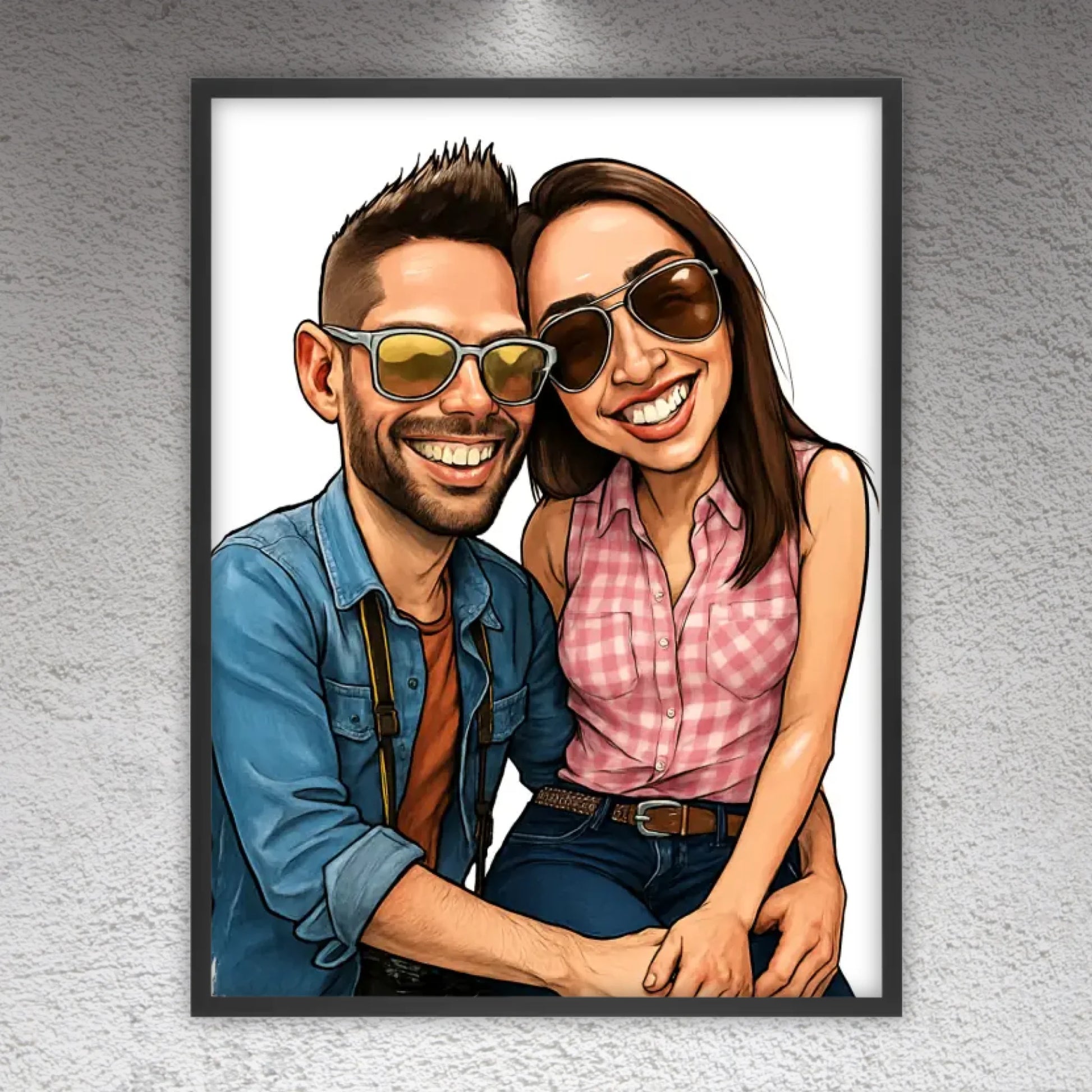 Verwandle dein Lieblingsfoto in eine witzige Karikatur und bringe damit jede Wand zum Strahlen! Lass deinem Humor freien Lauf und genieße ein einzigartiges Kunstwerk, das garantiert für Lacher sorgt. Einfach Foto hochladen, zurücklehnen und staunen!