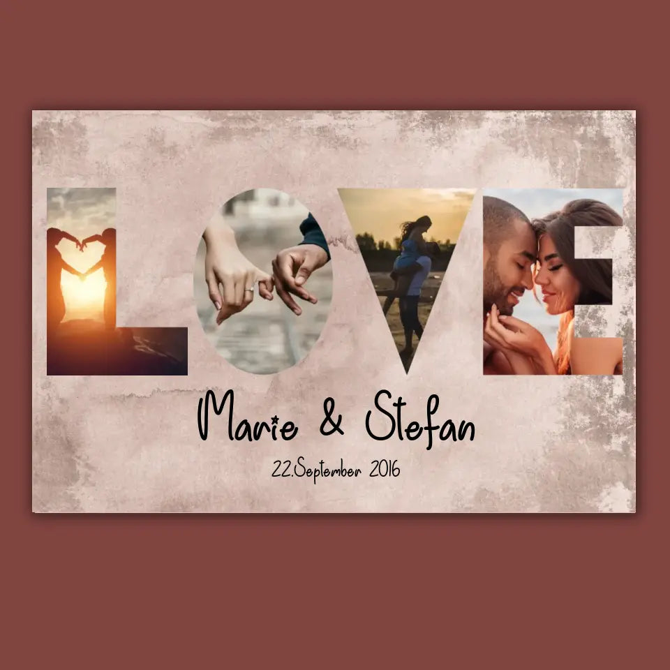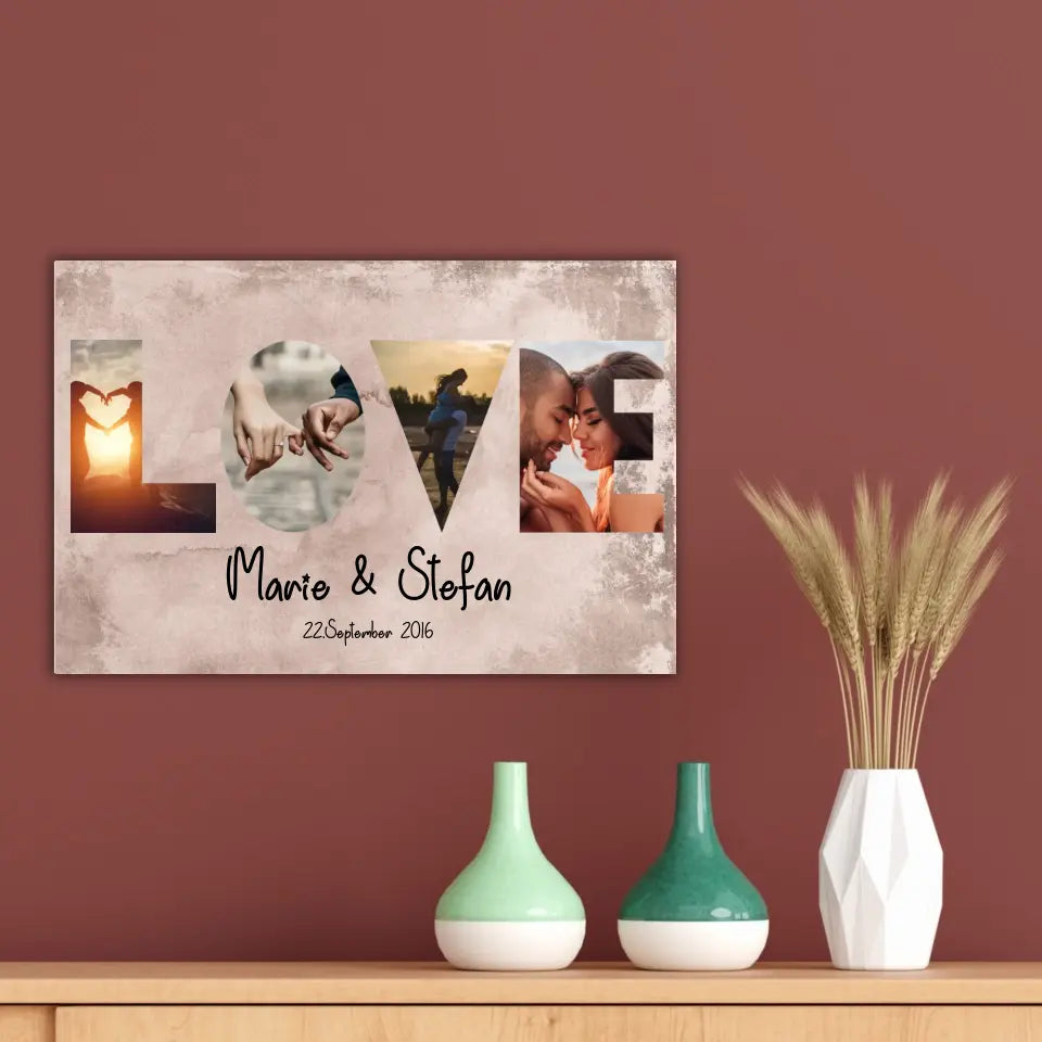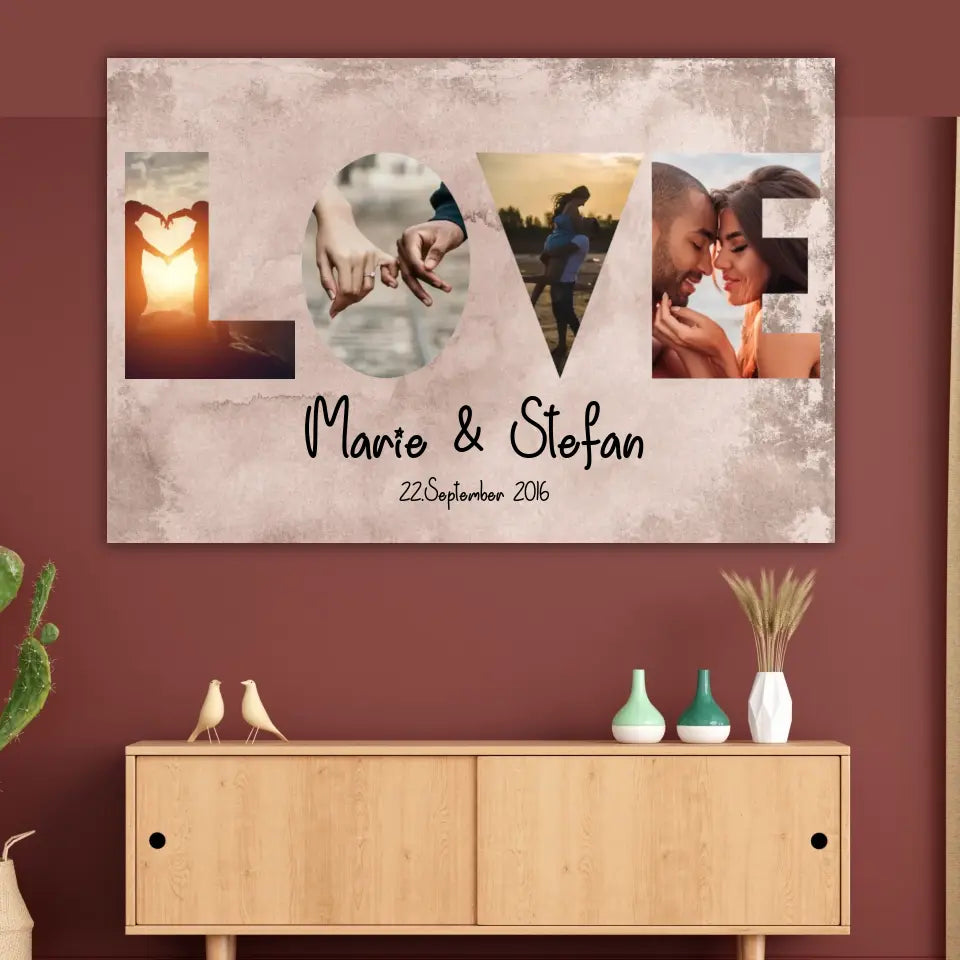 Buchstabieren Sie Ihre Liebe – mit dieser kreativen Foto-Buchstaben-Leinwand! Jeder Buchstabe wird mit Ihren persönlichen Fotos gefüllt und ergibt zusammen ein Wort oder einen Namen, der Ihnen am Herzen liegt. Kunstvolle Gestaltung trifft auf emotionale Bedeutung und schafft ein einzigartiges Wandkunstwerk. Hochwertig verarbeitet und langlebig, wird diese Leinwand zum visuellen Ausdruck Ihrer Gefühle – perfekt, um Ihre liebsten Menschen oder Momente zu ehren und täglich zu sehen.