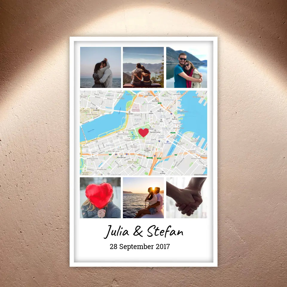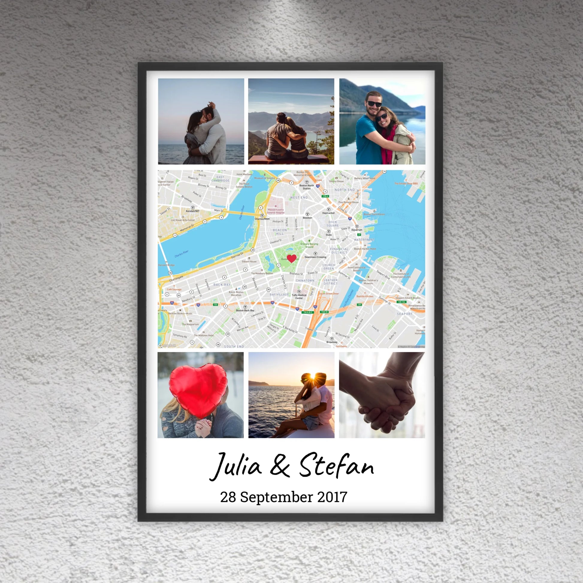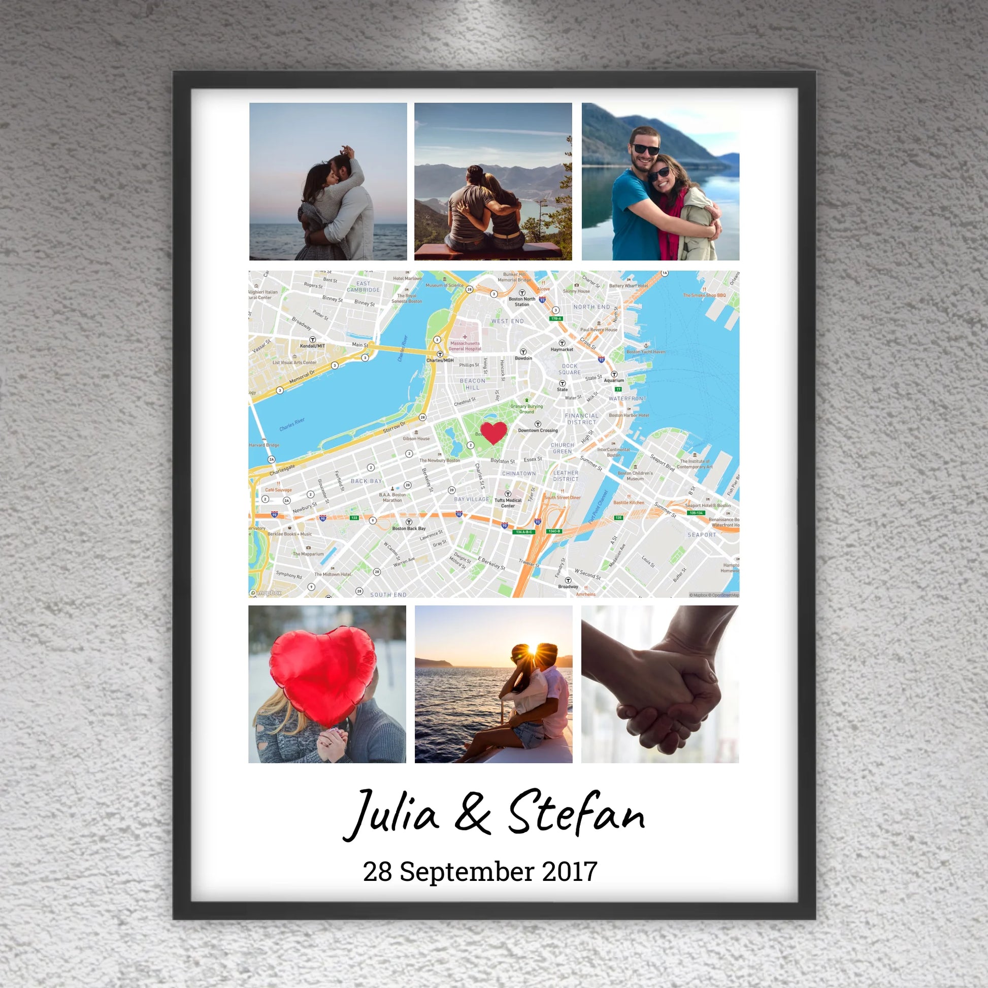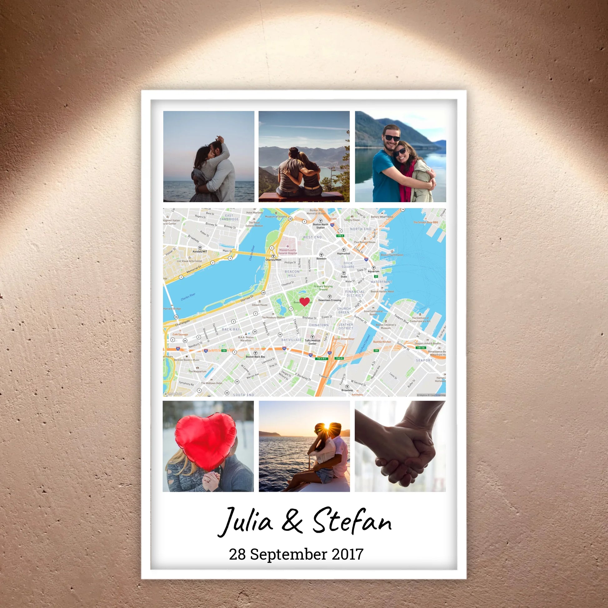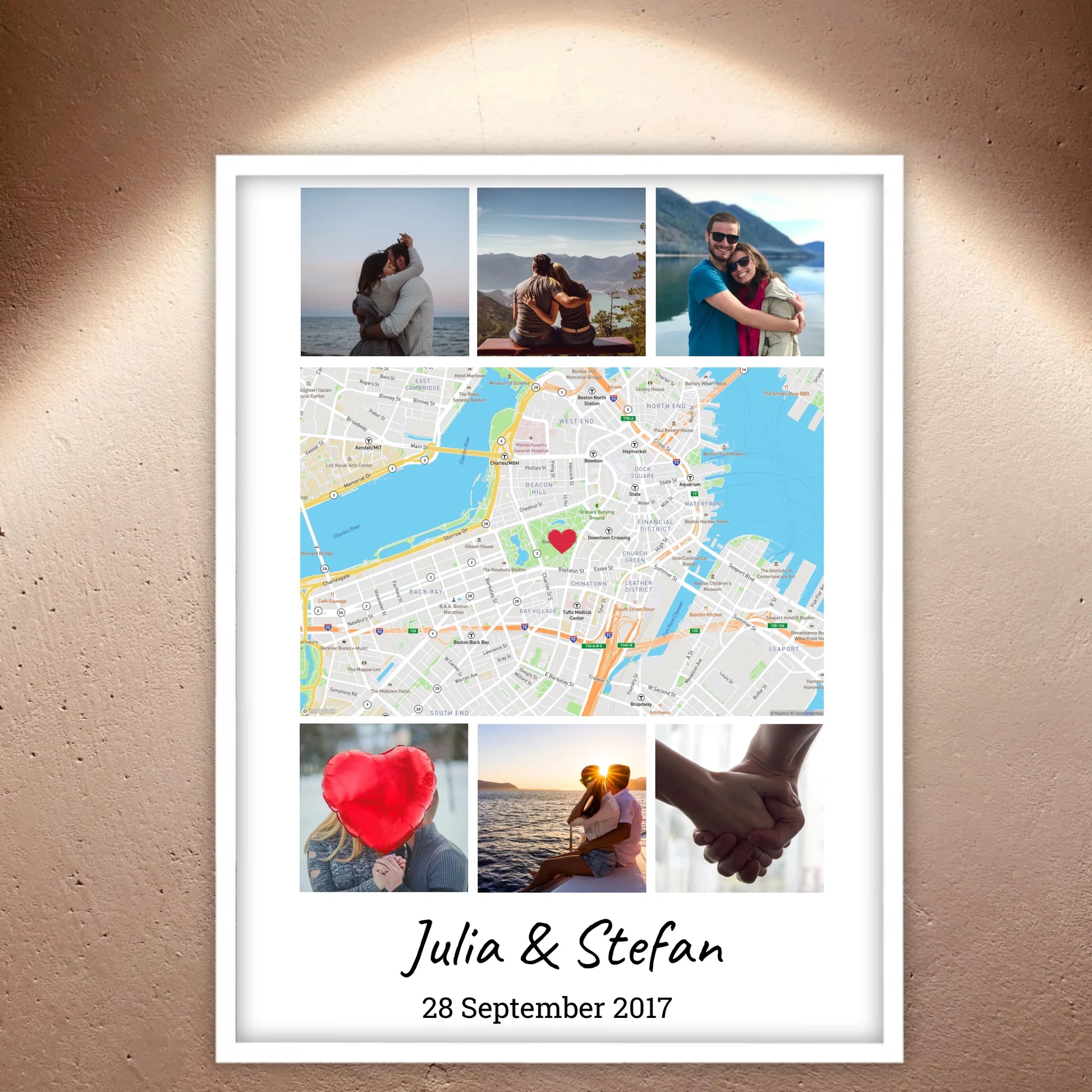 Kombinieren Sie Erinnerungen mit Geografie – mit dieser kreativen Foto-Ort-Collage! Ihre liebsten Fotos treffen auf eine Landkarte des Ortes, an dem sie entstanden sind, und schaffen ein einzigartiges visuelles Abenteuer. Hochwertig gedruckt und vielseitig einsetzbar, wird diese Collage zum Gesprächsstarter in jedem Raum. Ein verspieltes Kunstwerk für Reiselustige und Erinnerungssammler – perfekt, um Ihre Abenteuer und die Orte, die Sie lieben, kreativ zu dokumentieren!