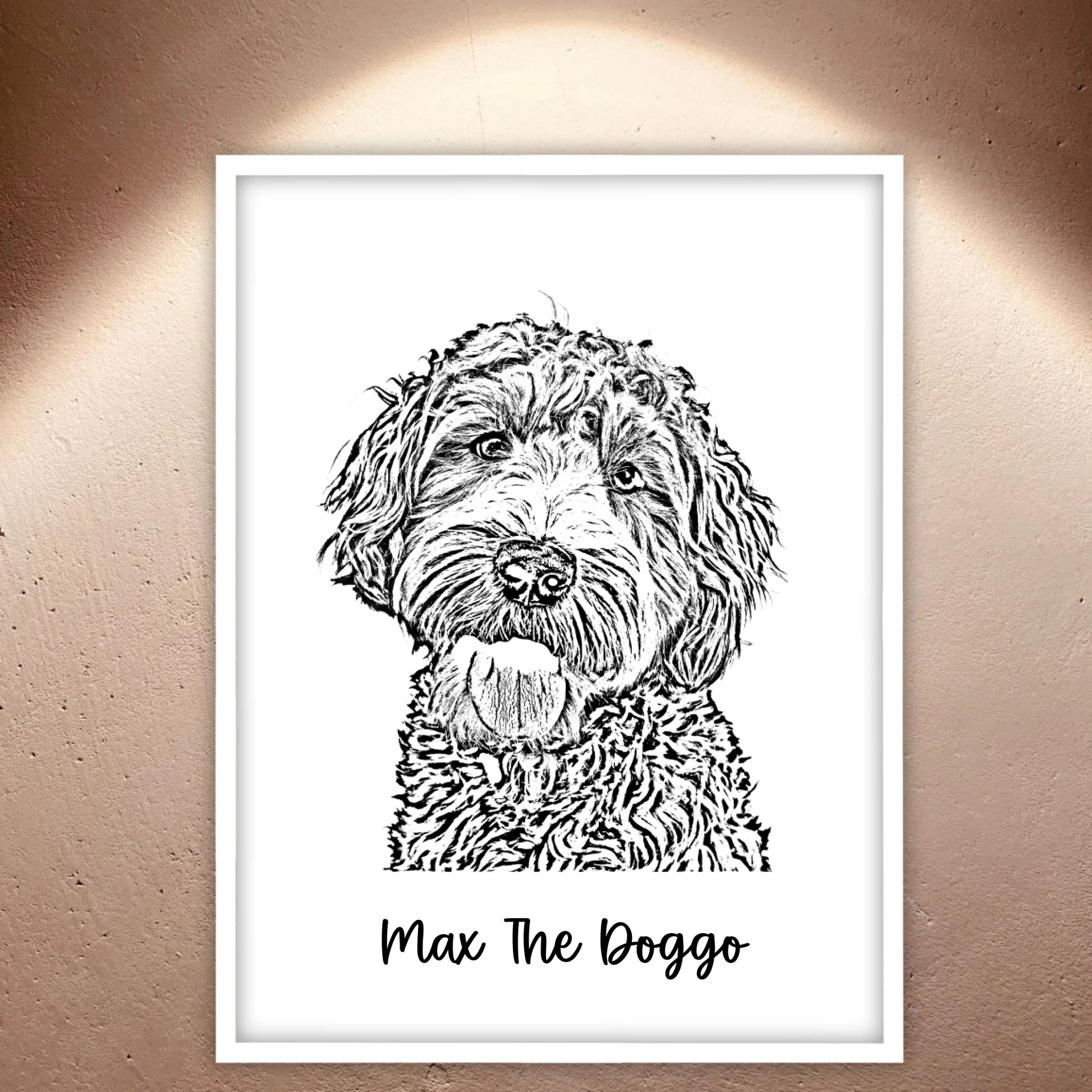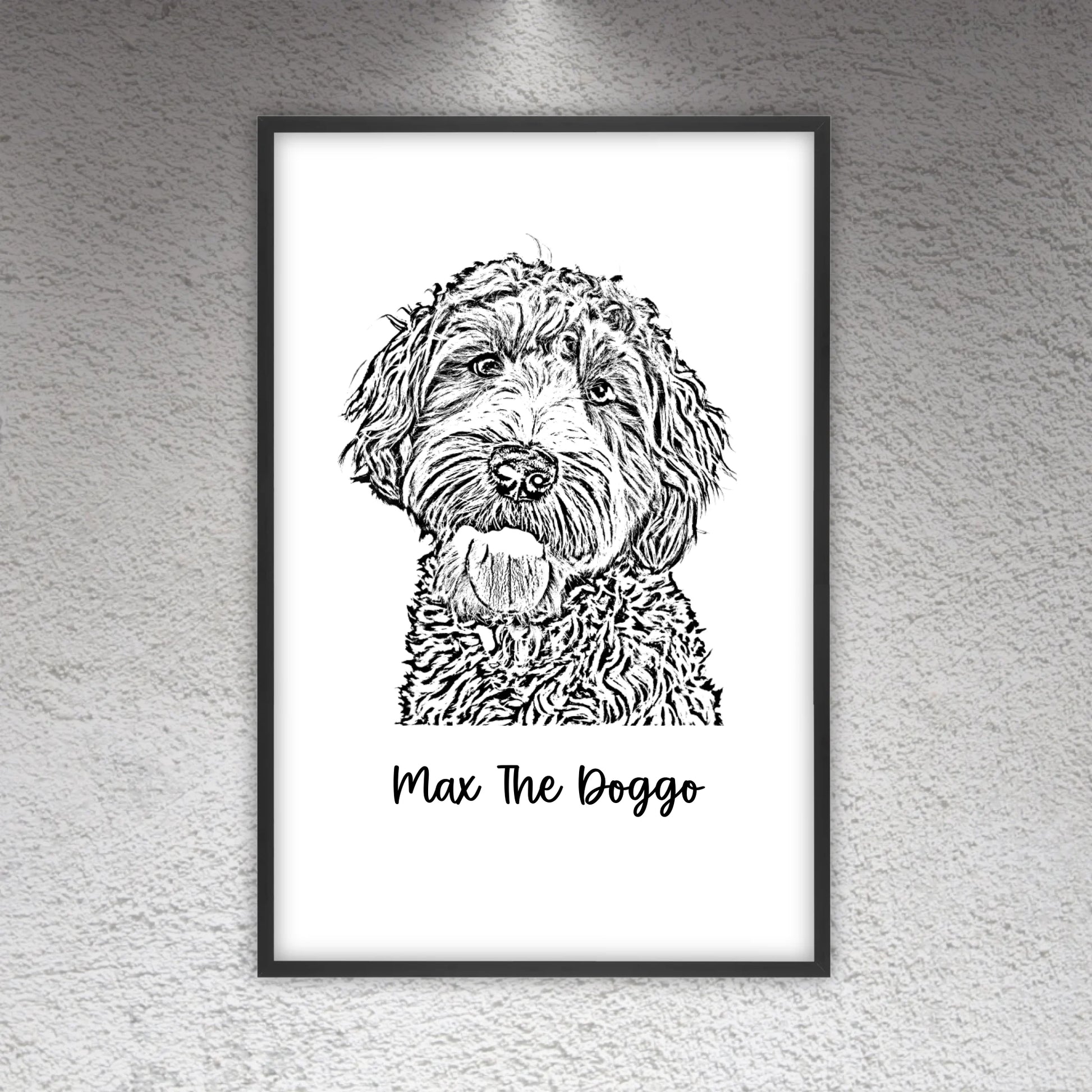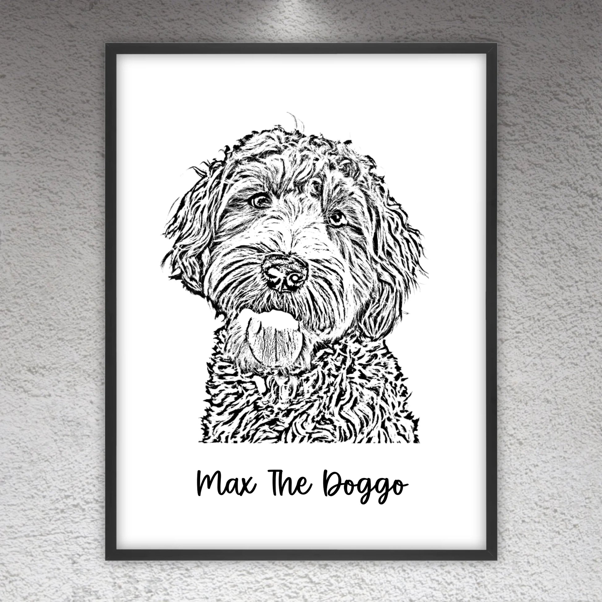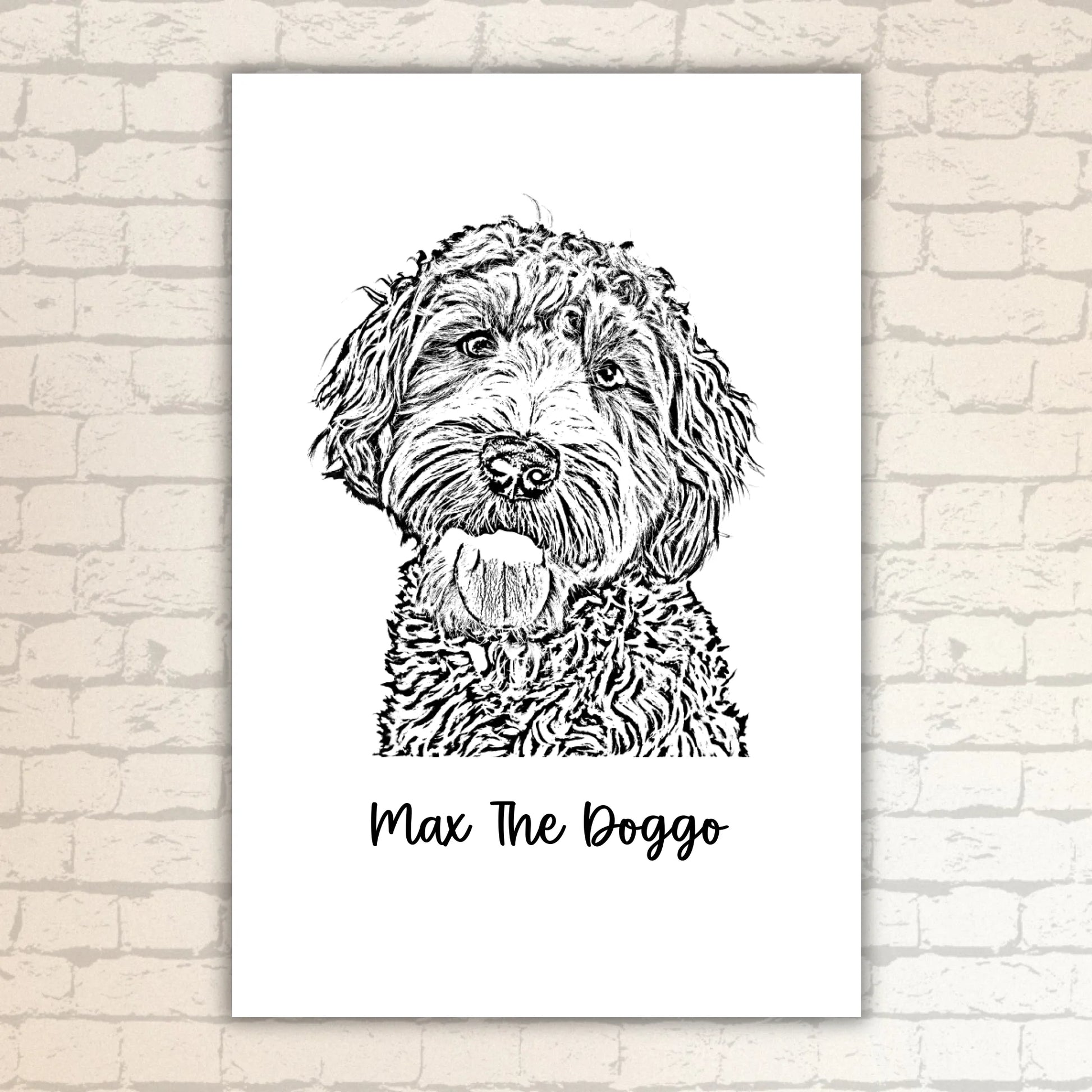 gezeichnetes Konturbild von deinem Haustier - individuelle Leinwand