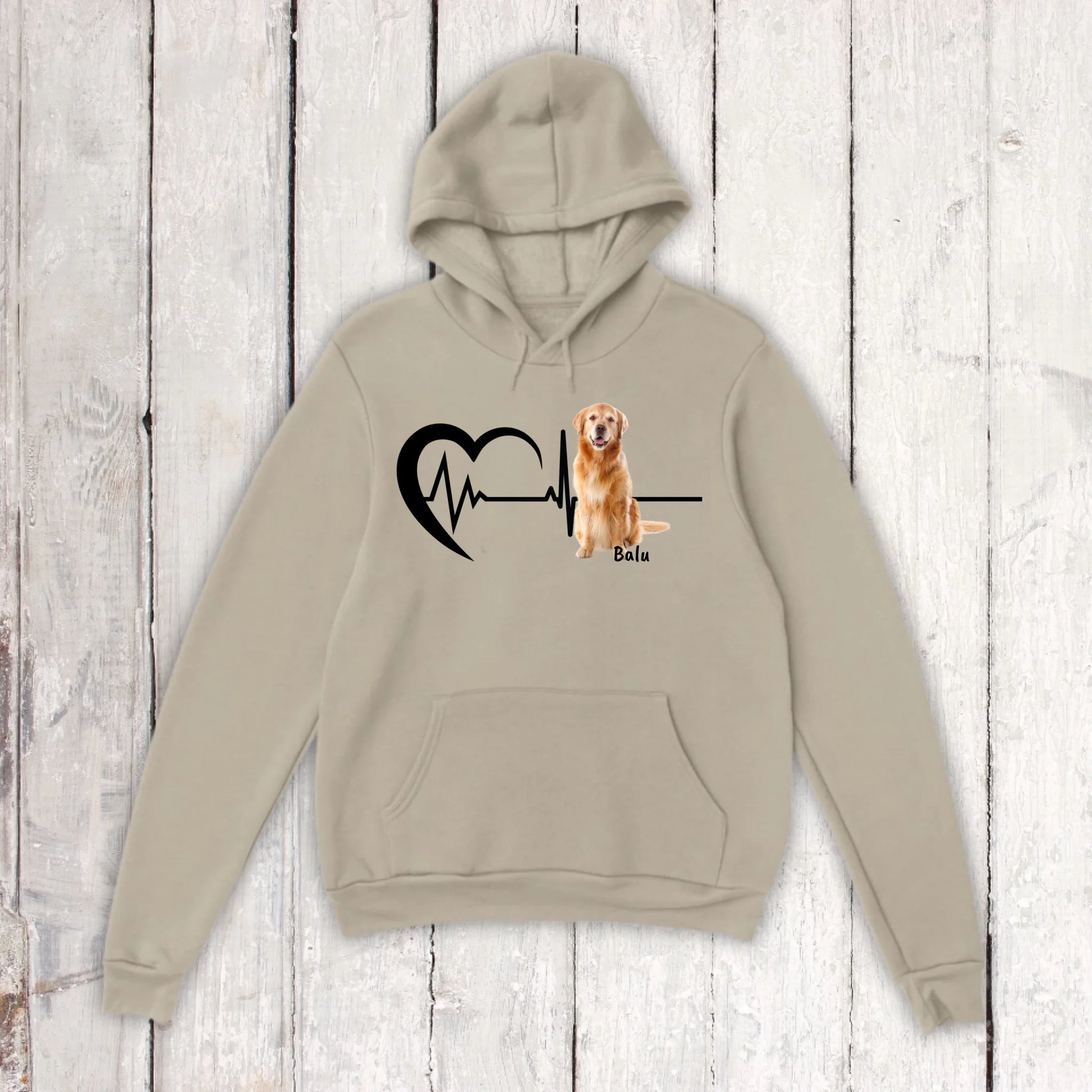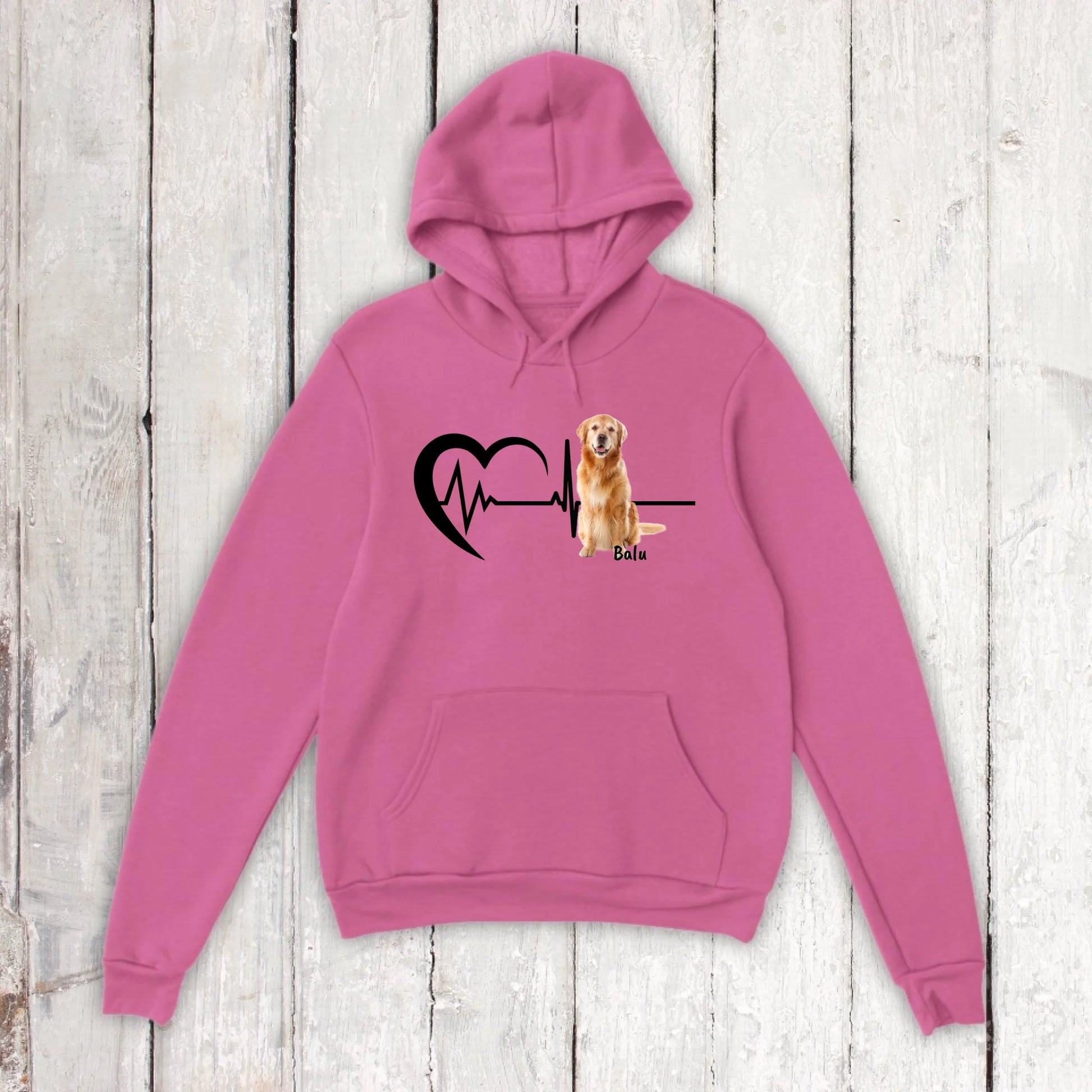 Dein Liebling im Herzschlag-Look! Dieses personalisierte Sweatshirt, Pullover oder Hoodie zeigt das Foto deiner Fellnase in einem coolen Herzschlag-Design – das perfekte Accessoire für alle Tierliebhaber. Egal ob Hund, Katze oder anderes Haustier: Trage deine pelzige Liebe stolz zur Schau. Gemütlich, stylisch und voller Persönlichkeit – ein Must-have für jeden, der sein Tier im Herzen trägt!