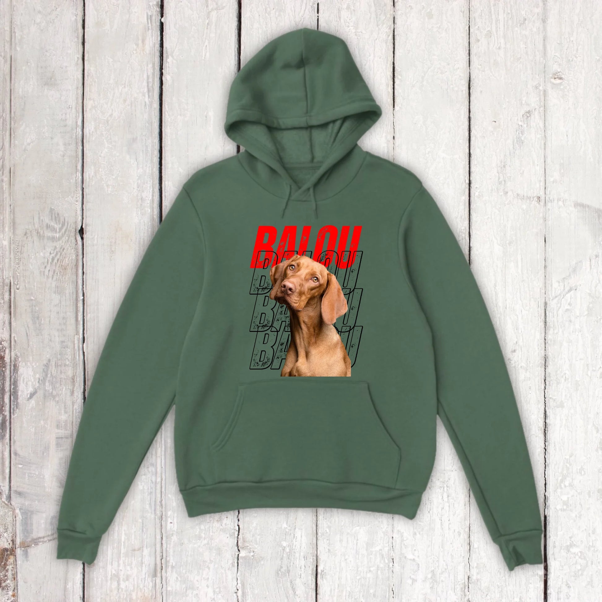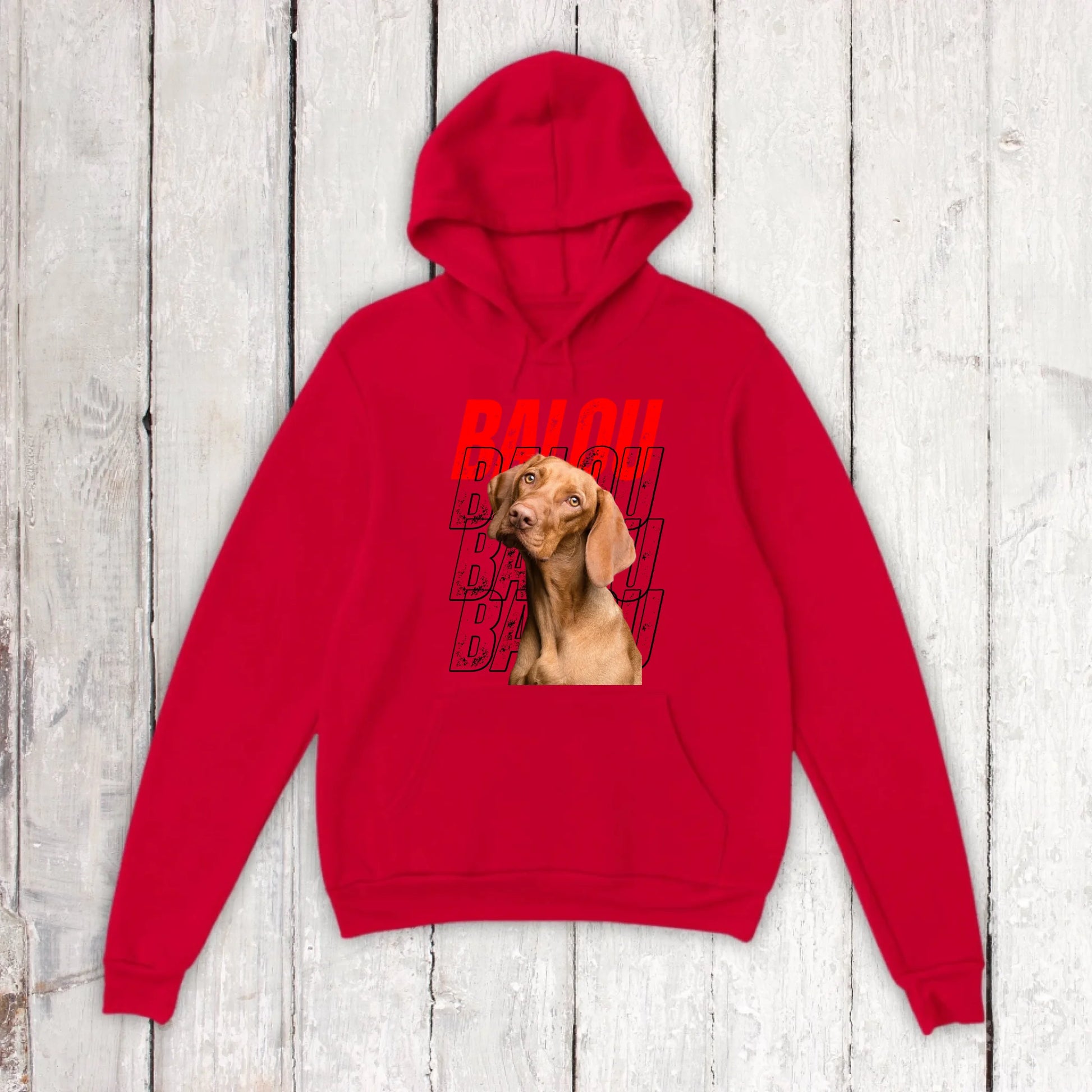 Dein Hund verdient seinen eigenen Star-Look! Diese individuelle Hoodie zeigt stolz den Namen deines Vierbeiners zusammen mit seinem Foto – perfekt für alle Hundeeltern, die ihre Liebe zur Welt hinausschreien möchten. Gemütlich, stylisch und ein echtes Unikat, das garantiert Blicke auf sich zieht. Ob beim Spaziergang oder gemütlich zu Hause – mit dieser personalisierten Hoodie trägst du deine Hundeliebe buchstäblich auf der Brust!