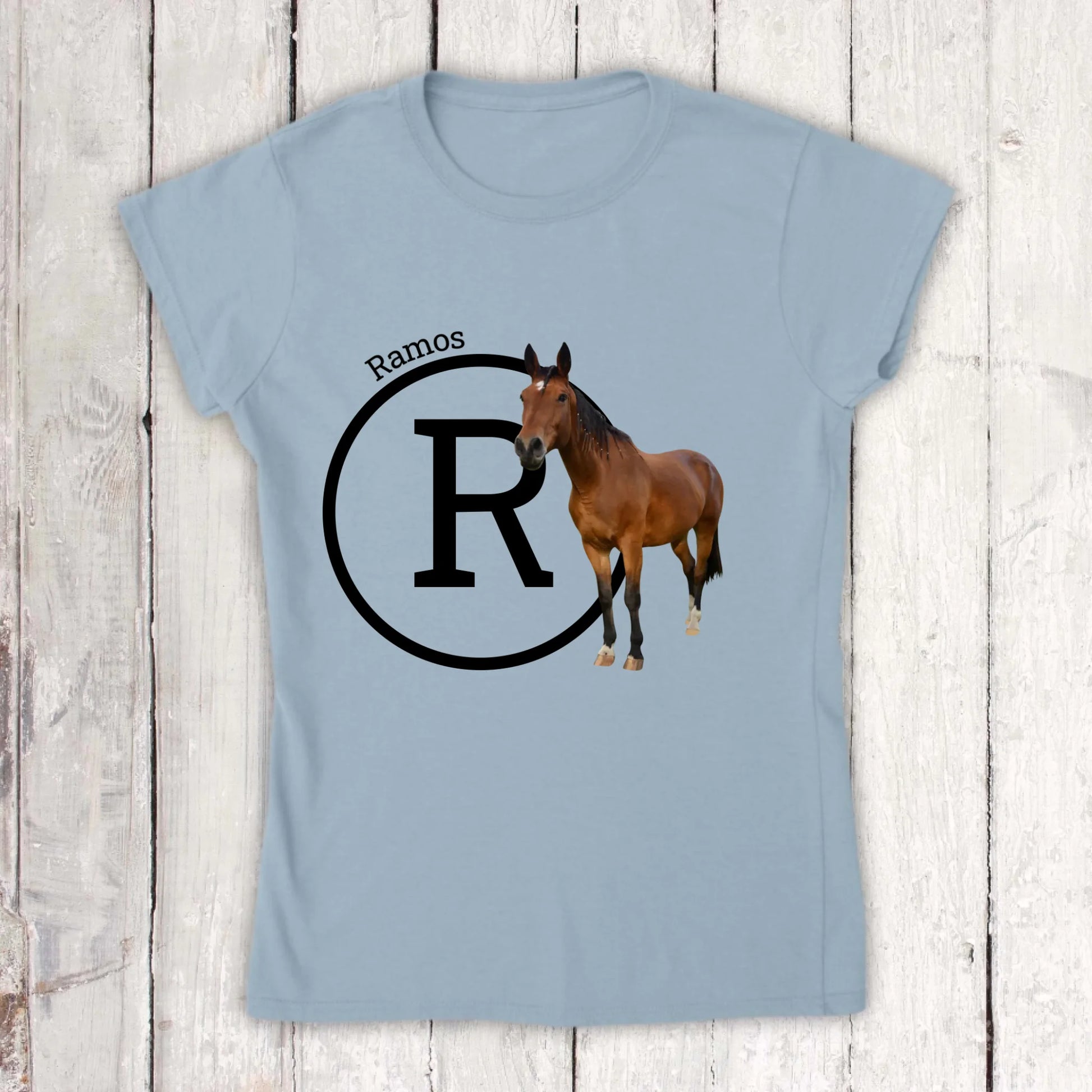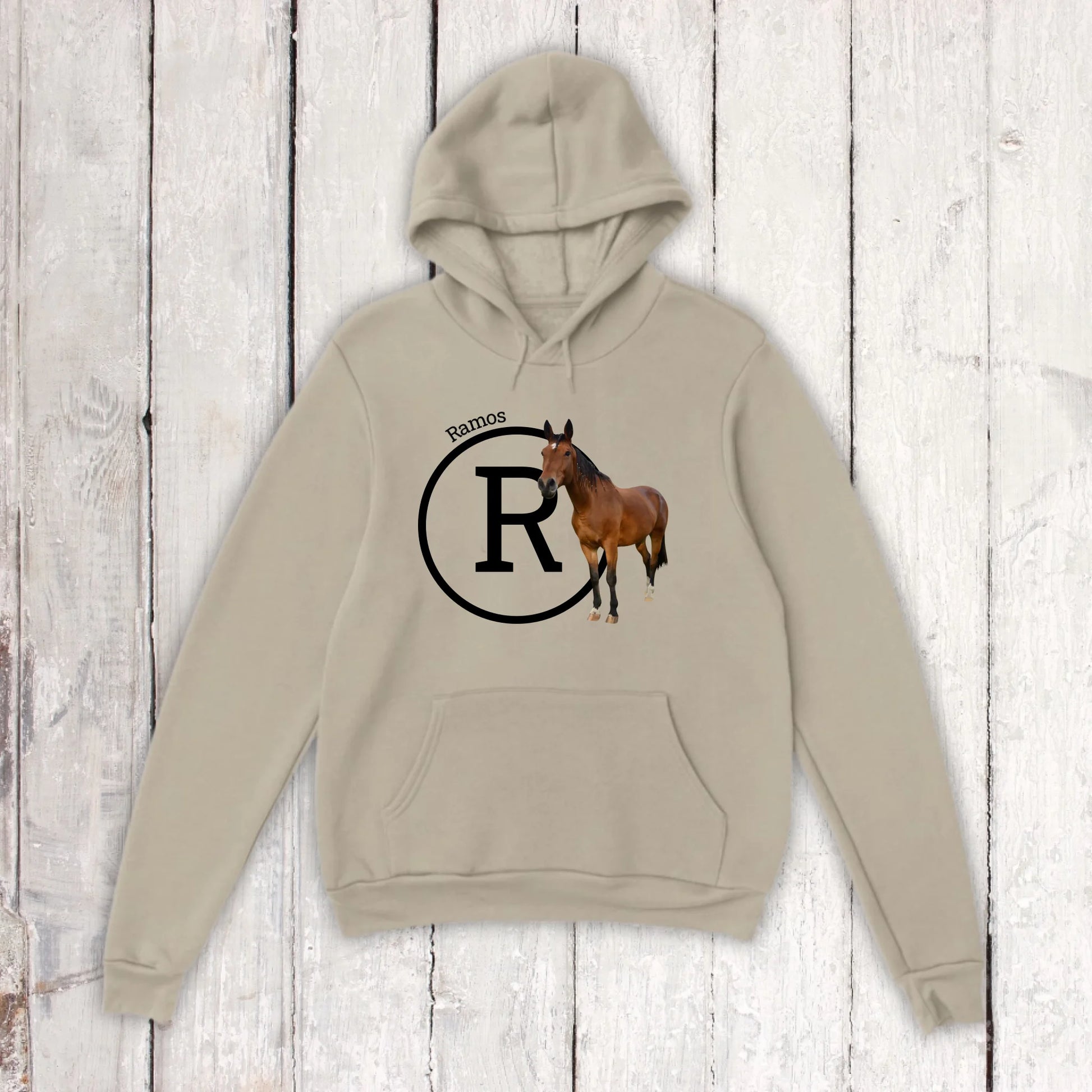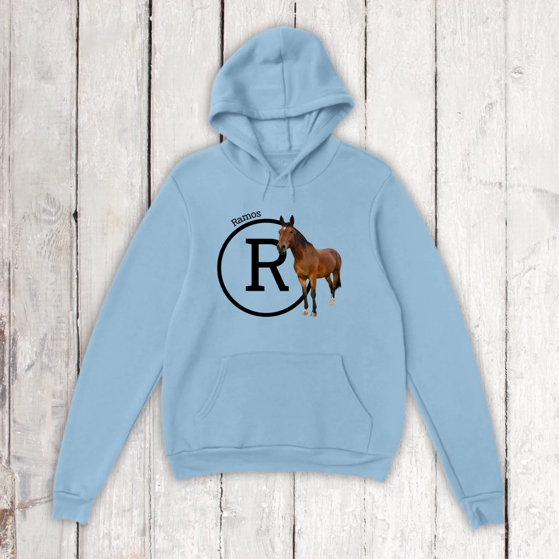 Initiale mit Bild und Text für Reiter und Pferdeliebhaber - Individueller Hoodie und T-Shirt