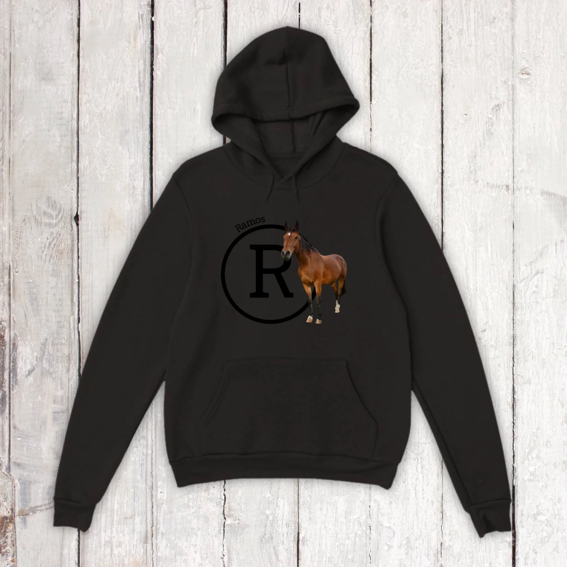 Individueller Hoodie oder T-Shirt für Reiter und Reiterinnen: Mit Initialen, Bild (z. B. Pferd) & Text personalisiert. Perfekt für Stall, Alltag & als Geschenk!