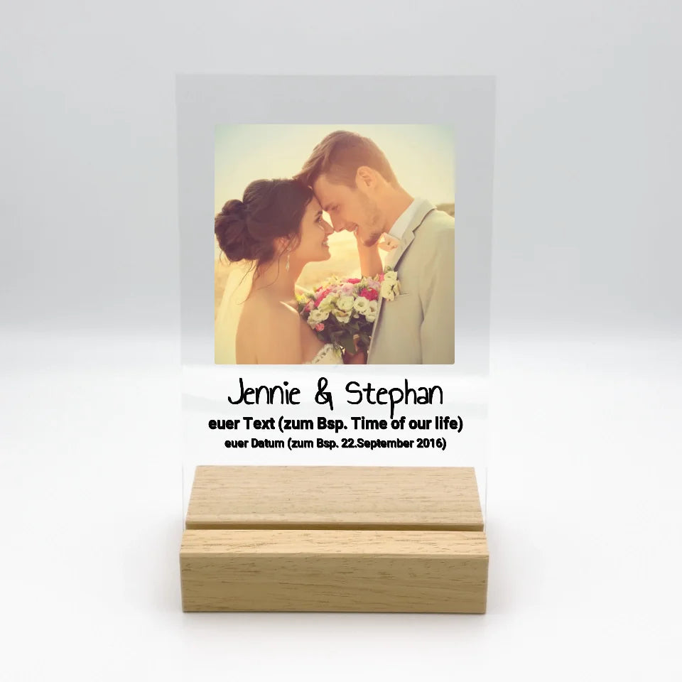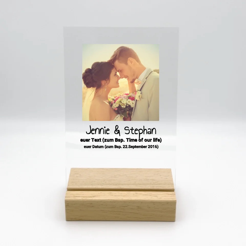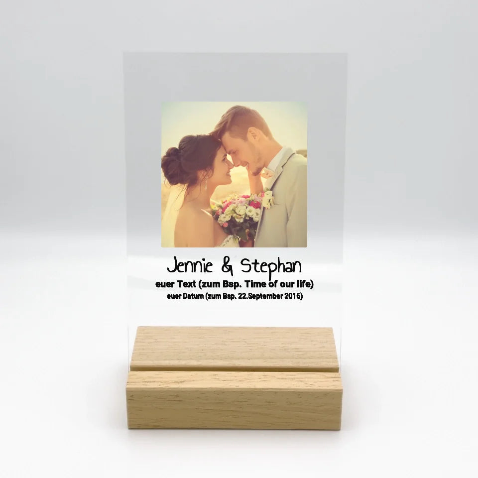 - ✔️ Hochwertiger Acrylaufsteller mit Holzsockel