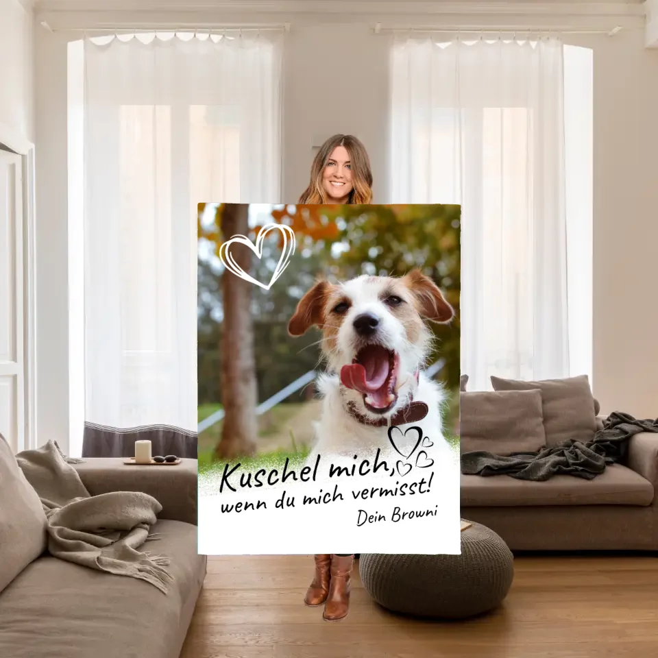 Wir haben für unseren verstorbenen Hund "Kuschelkissen" mit einem Bild von ihm bestellt. Die Kissen sind sehr schön geworden und helfen über den Verlust. Das Foto ist realistisch aufgedruckt.