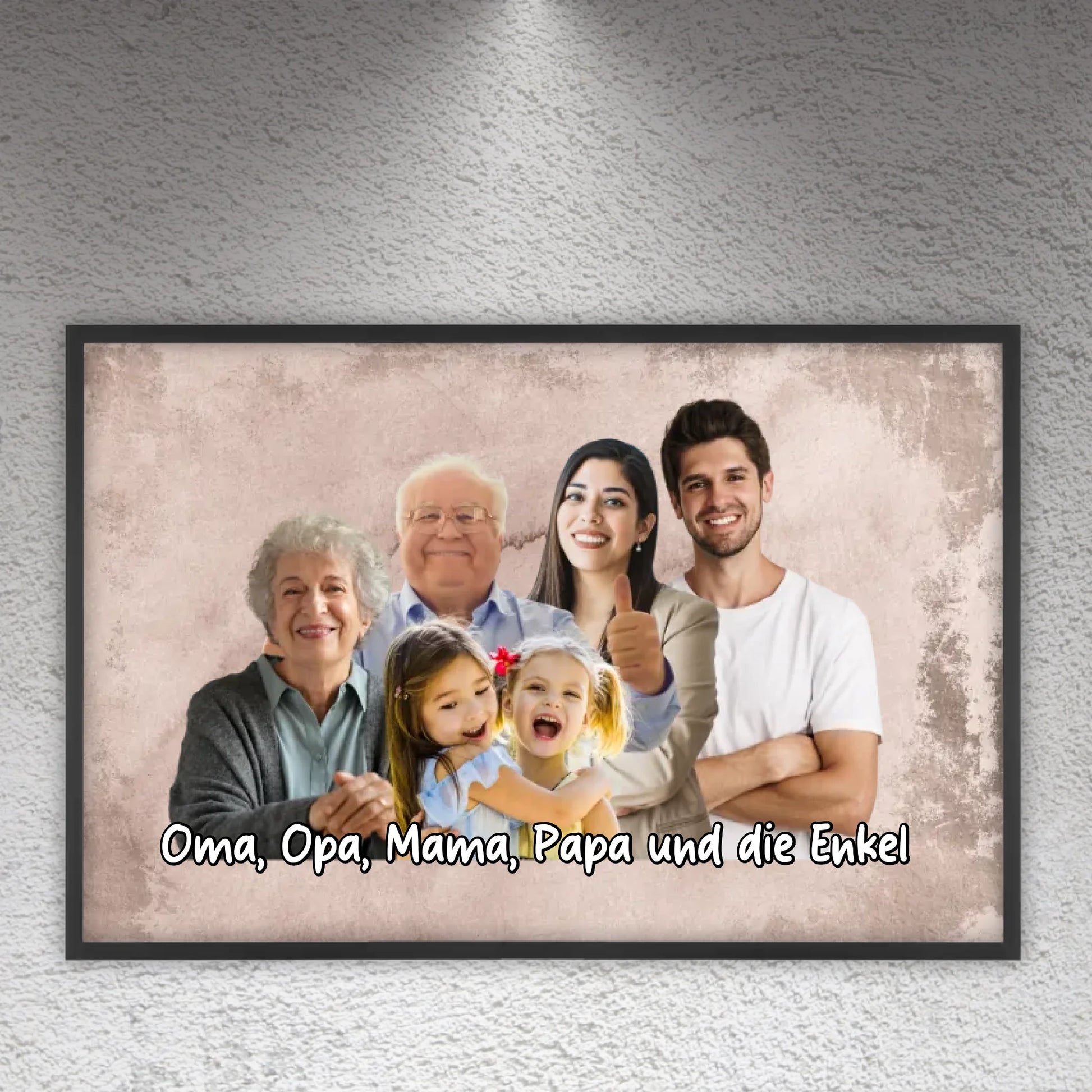 Vereinen Sie Ihre liebsten Menschen auf einem einzigartigen Poster! Dieses personalisierte Kunstwerk kombiniert einzelne Fotos mehrerer Personen zu einem harmonischen Gesamtbild – perfekt für Familien, Freundesgruppen oder Teams. Mit elegantem Galerierahmen wirkt das Poster wie ein professionelles Kunstwerk an Ihrer Wand. Jedes Stück wird nach Ihren Vorgaben individuell gestaltet und gedruckt. Ein bedeutungsvolles Geschenk, das Beziehungen würdigt und Erinnerungen lebendig hält. Schaffen Sie ein visuelles Statement, das Ihre persönliche Geschichte erzählt.