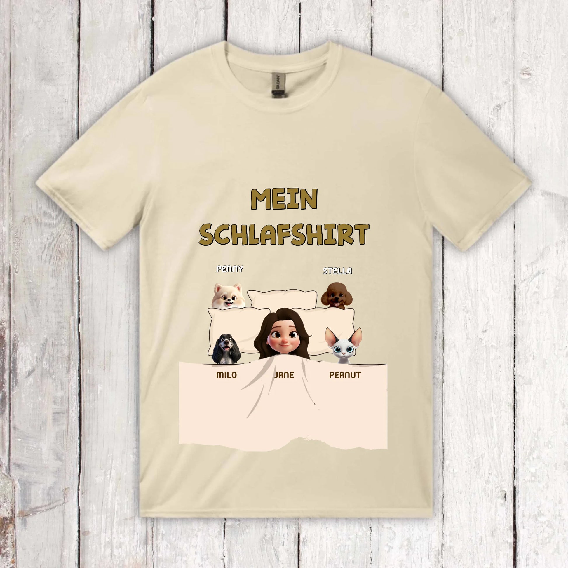 Tragen Sie Ihr offizielles Schlafshirt, das Sie und Ihre Haustiere stilvoll vereint. Dieses individuell gestaltbare T-Shirt bietet bequemen Sitz und hält Ihre liebsten Begleiter ganz nah – ideal für entspannte Stunden und eine persönliche Note in Ihrem Alltag.