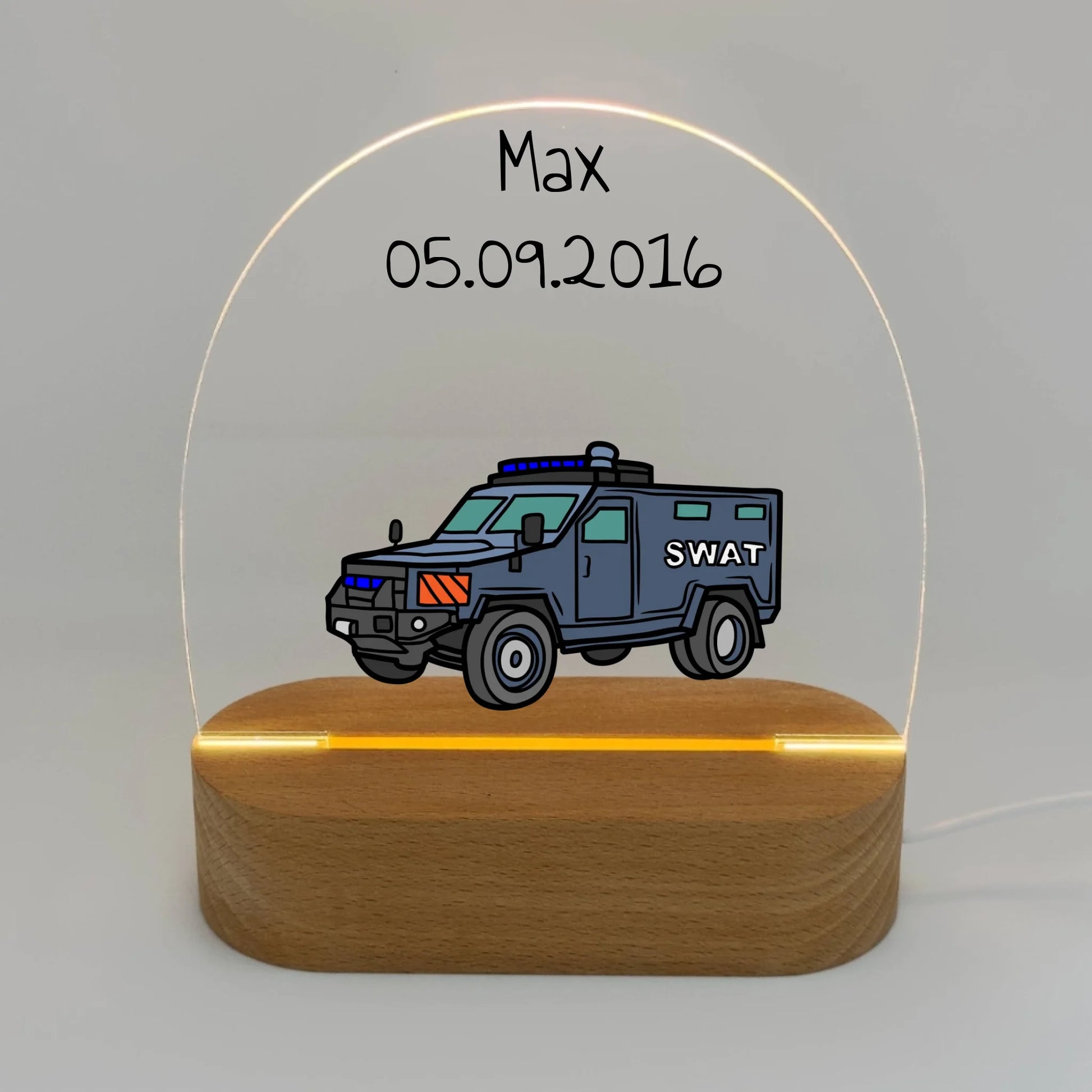 Polizei Nachtlicht mit eigenem Namen - Individuelles LED Nachtlicht
