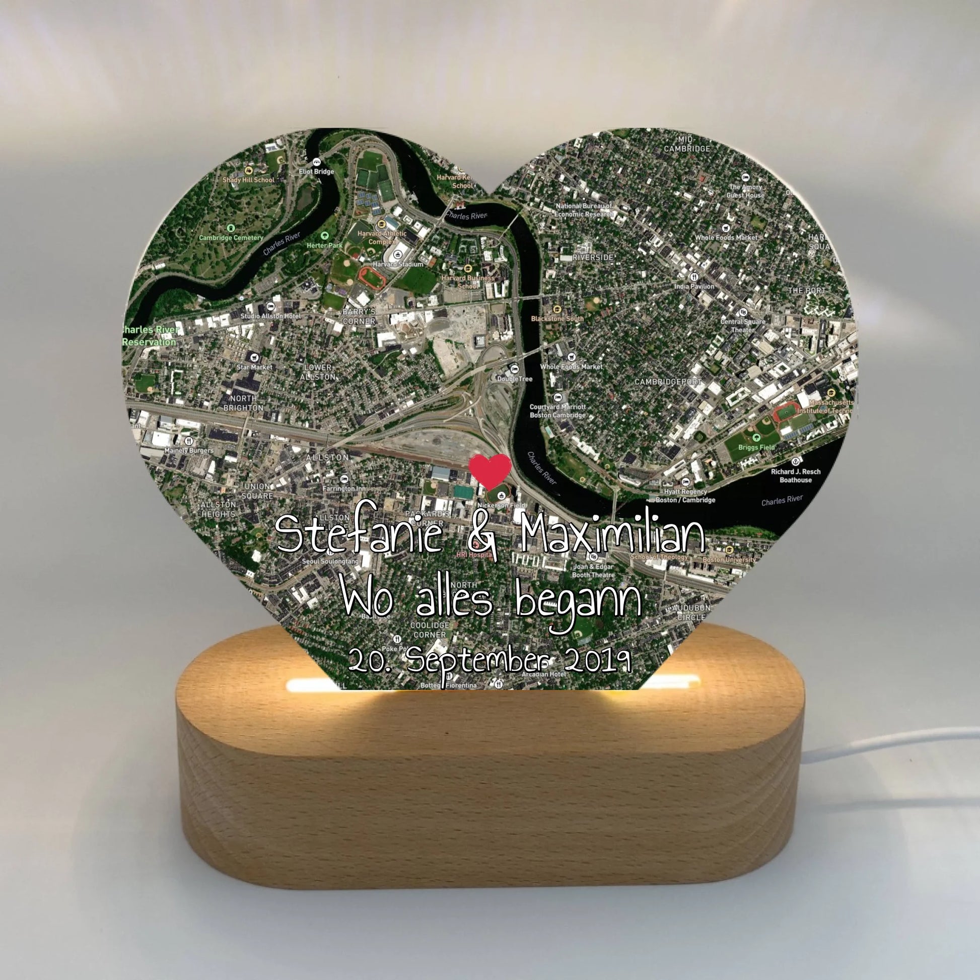 Wo alles begann - Individuelles beleuchtetes LED Acryl Herz